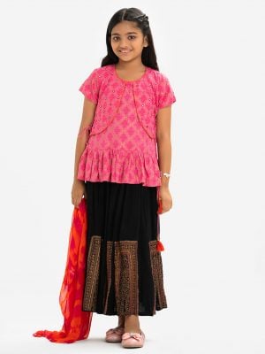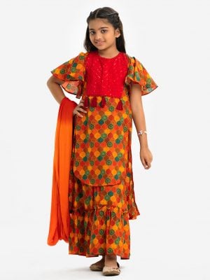 Kid girls short tunic in floral printed cotton fabric. Frill trim round neck, cap sleeves.